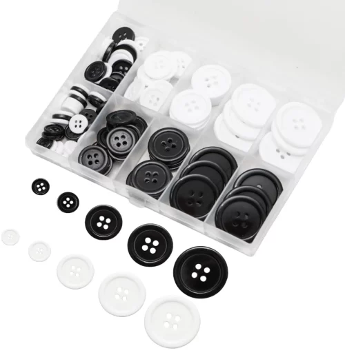 100 pcs Buttons for Crafts Buttons, Button DIY Buttons, Mixed Sewing Buttons, 5 Sizes of Round Mixed Buttons Suitable for for Crafts, Coats, Shirts, Pants, Shorts and More(White & Black)